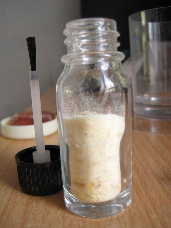 I had just the thing to store the potential sealant in - a 10ml glass vial, with an integrated application brush. This originally contained shellac, but what little that was left had long since gone off. An overnight soak in methylated spirits made light work of the shellac residue, and in turn, an overnight soak in soapy water made light work of the methylated spirits smell (I can't stand it).